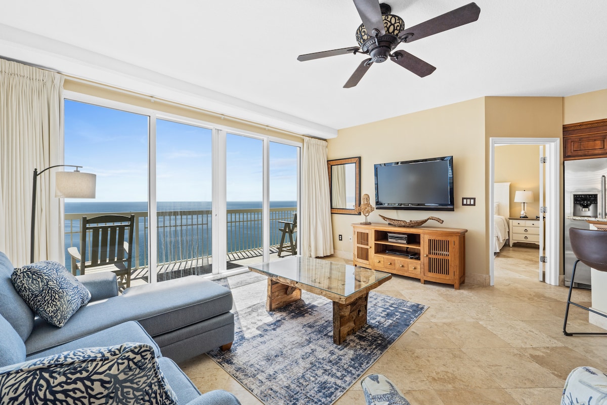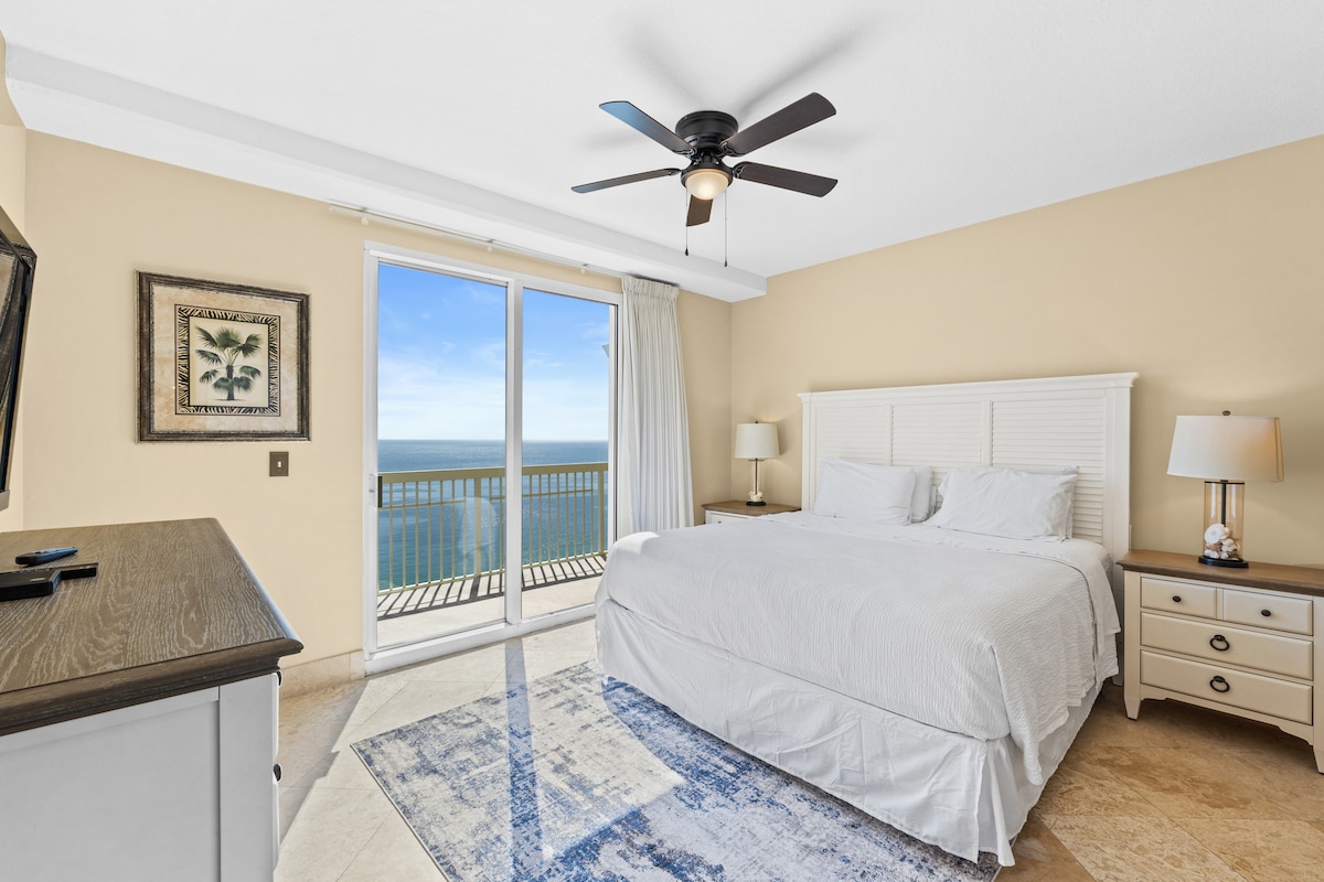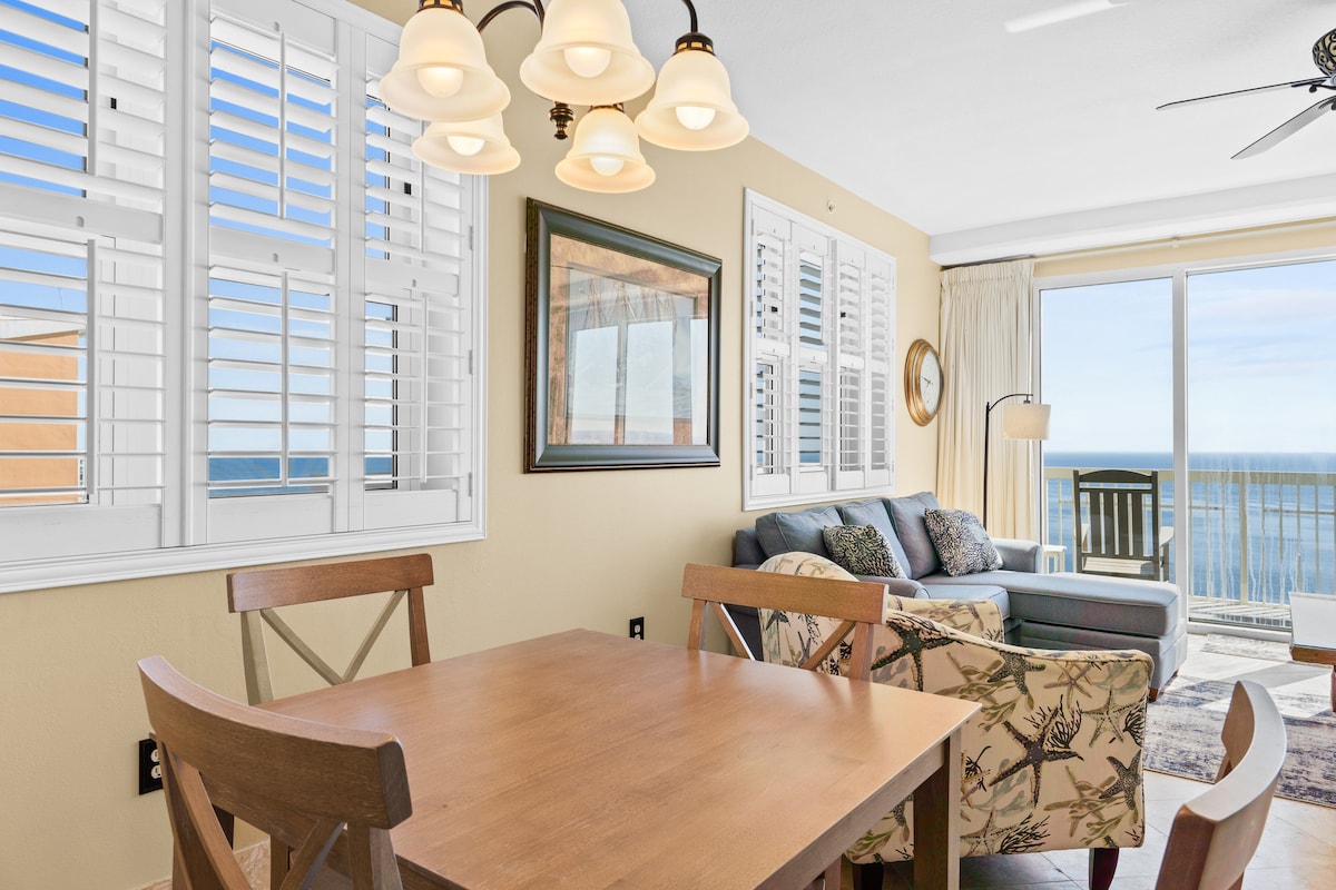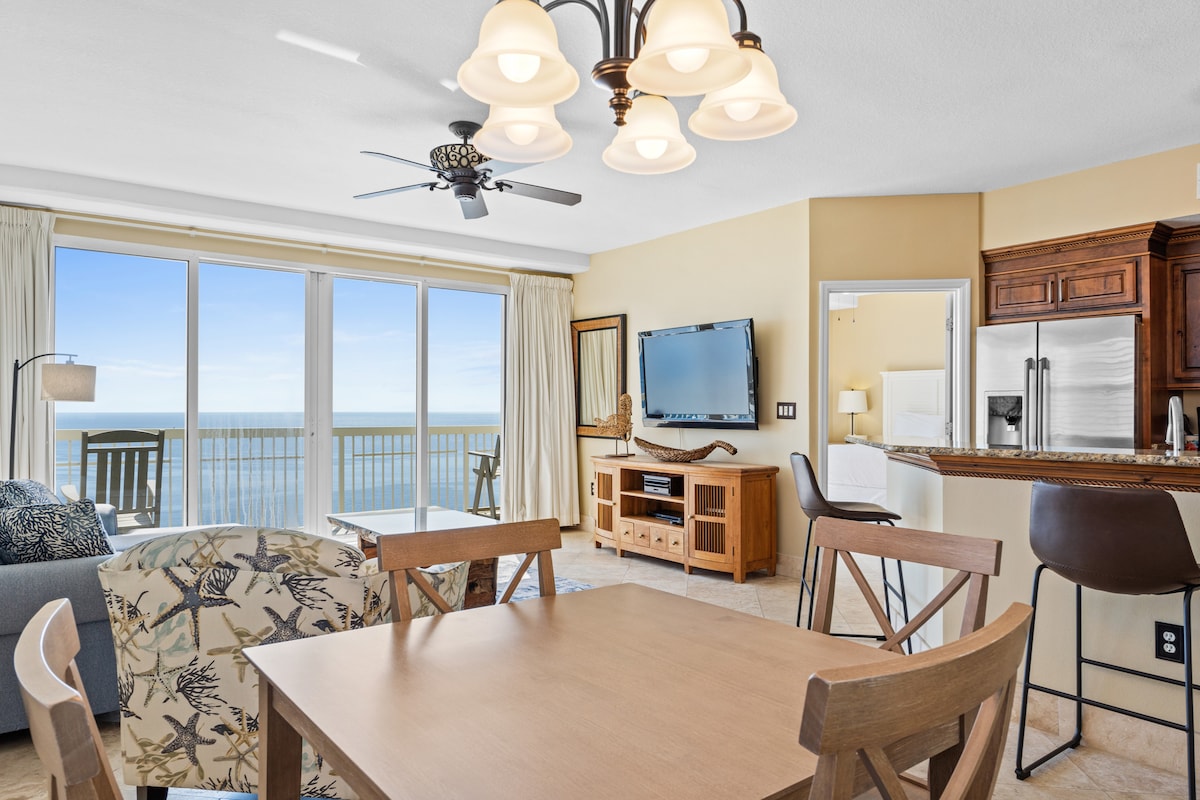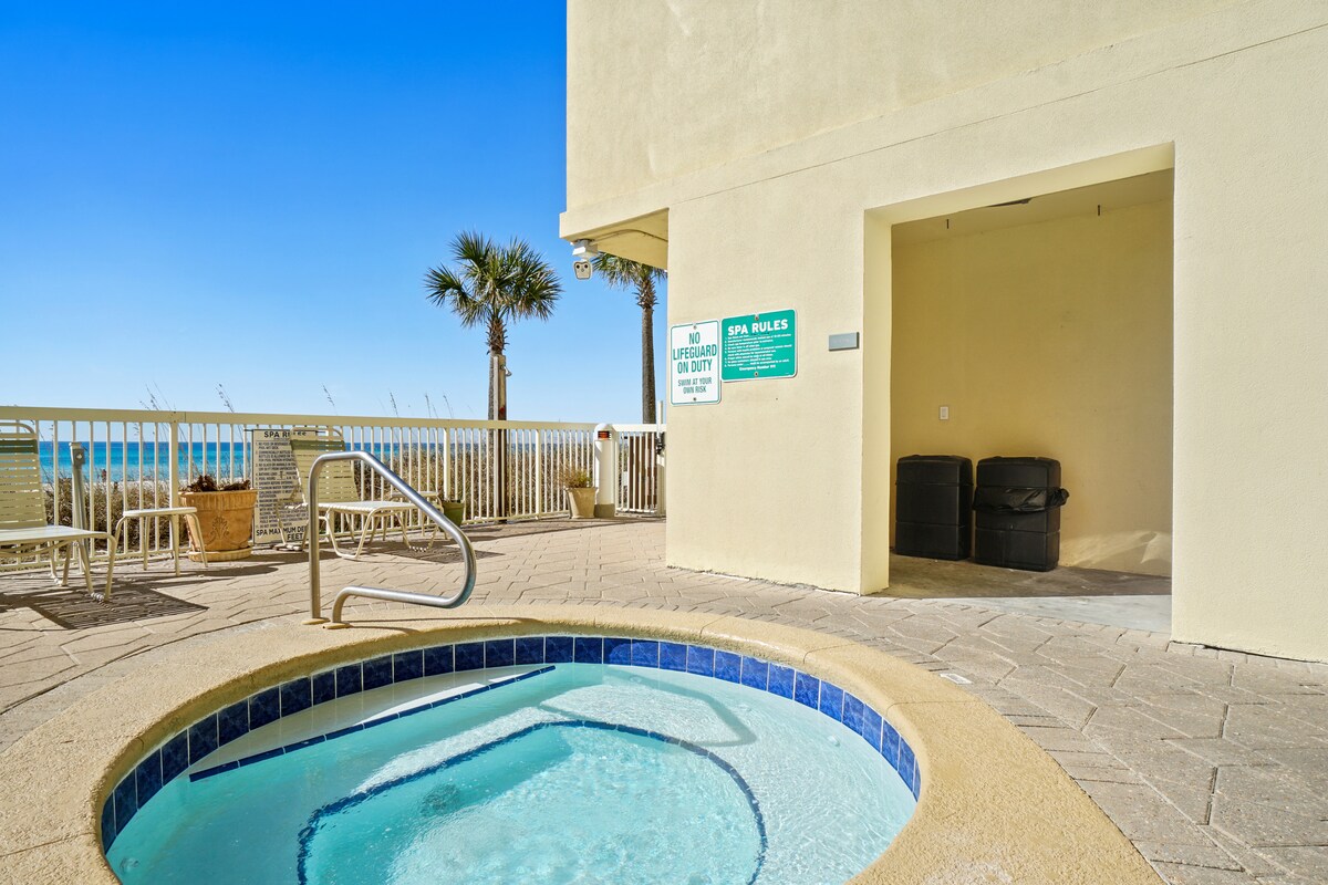 Panama City BeachThis beachfront penthouse at the Celadon Beach Resort has all you need for a truly memorable getaway! After a day in the Florida sun, you can relax in the oversized garden tub or enjoy the breathtaking views of the gulf from the large, wraparound balcony. This spacious condominium features plenty of natural light and a well-equipped kitchen. You will have access to two pools, two hot tubs, a fitness center and tennis courts. Celadon is near Pier Park but away from the heavier traffic.