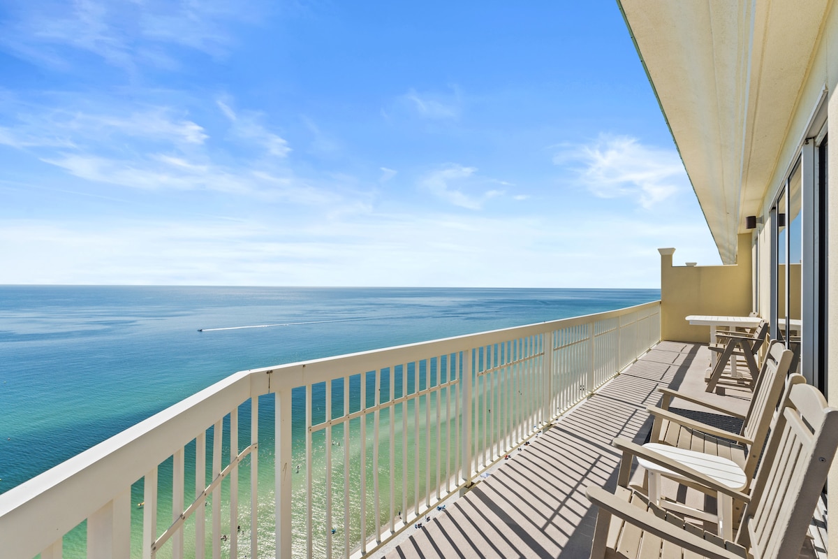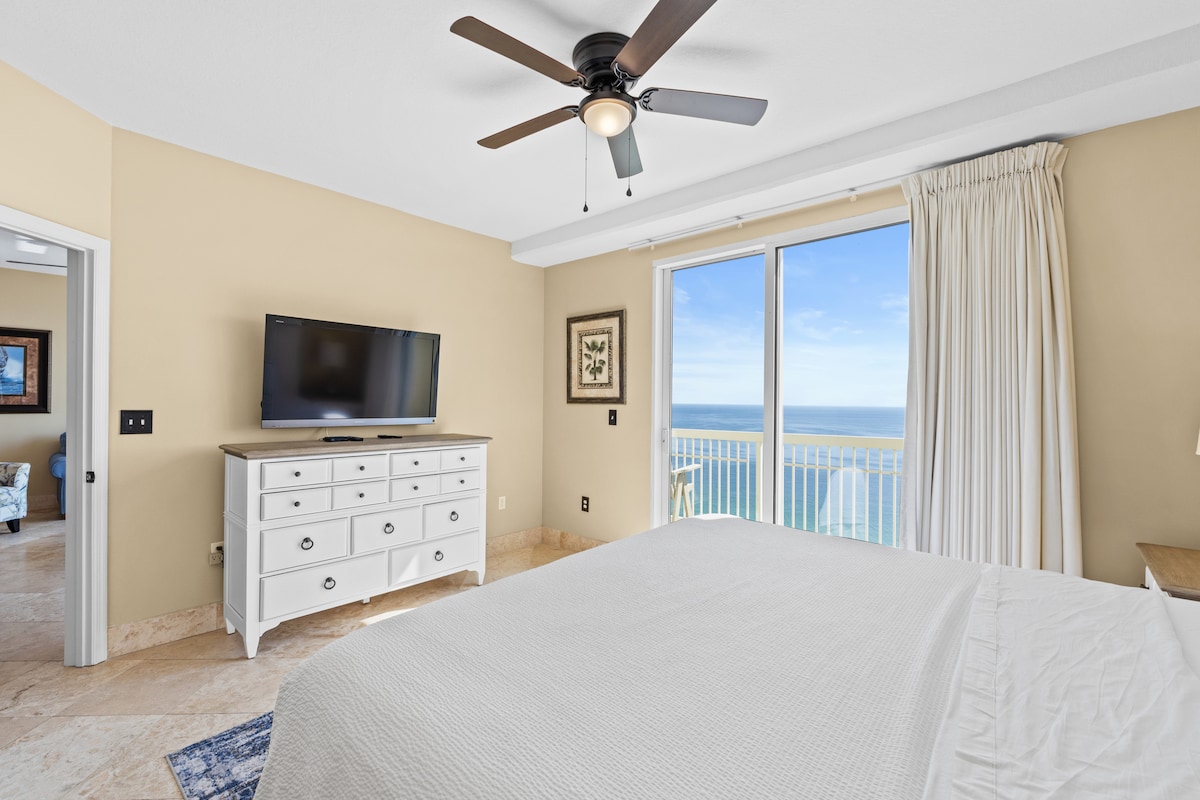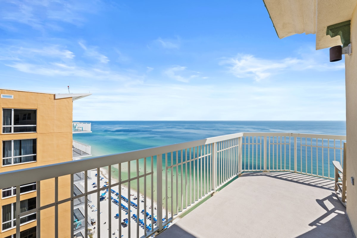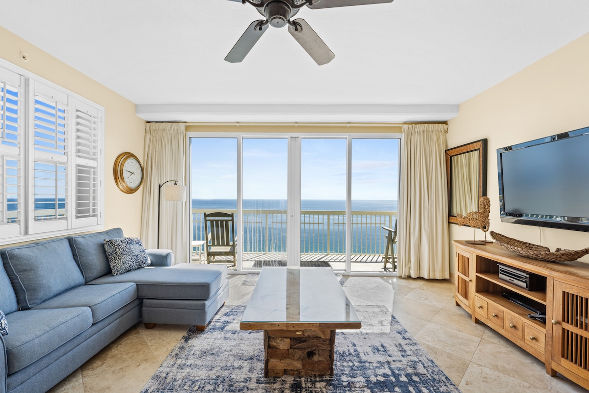 Panama City BeachThis beachfront penthouse at the Celadon Beach Resort has all you need for a truly memorable getaway! After a day in the Florida sun, you can relax in the oversized garden tub or enjoy the breathtaking views of the gulf from the large, wraparound balcony. This spacious condominium features plenty of natural light and a well-equipped kitchen. You will have access to two pools, two hot tubs, a fitness center and tennis courts. Celadon is near Pier Park but away from the heavier traffic.