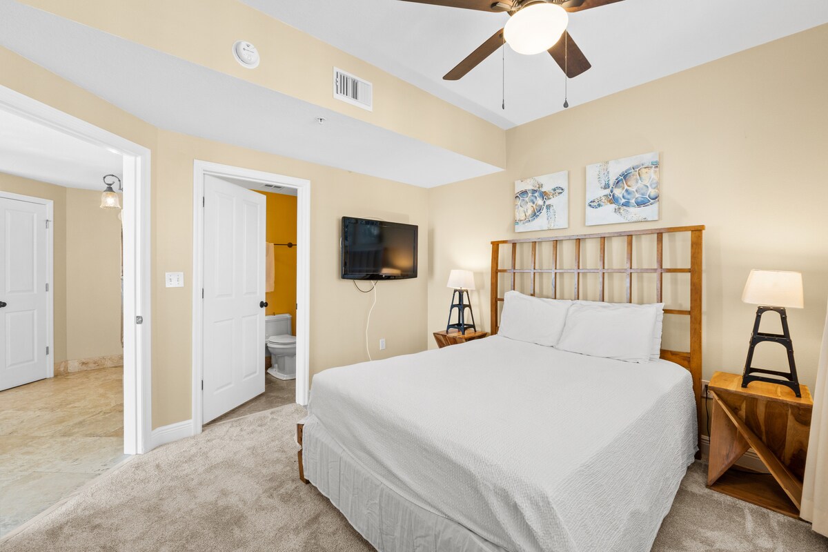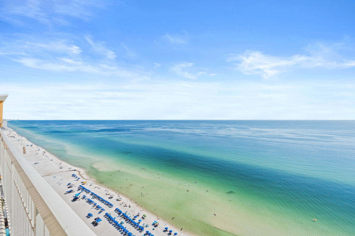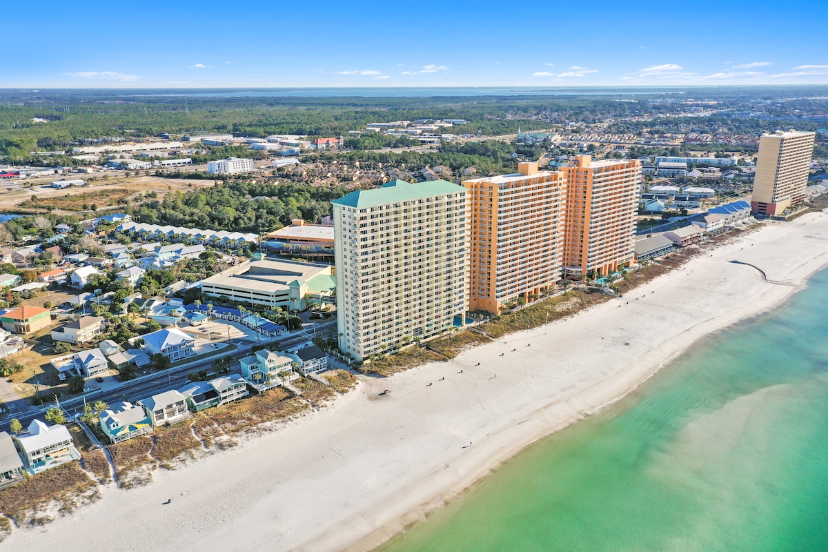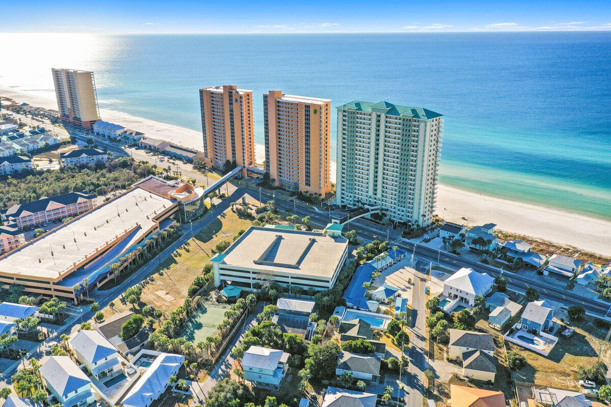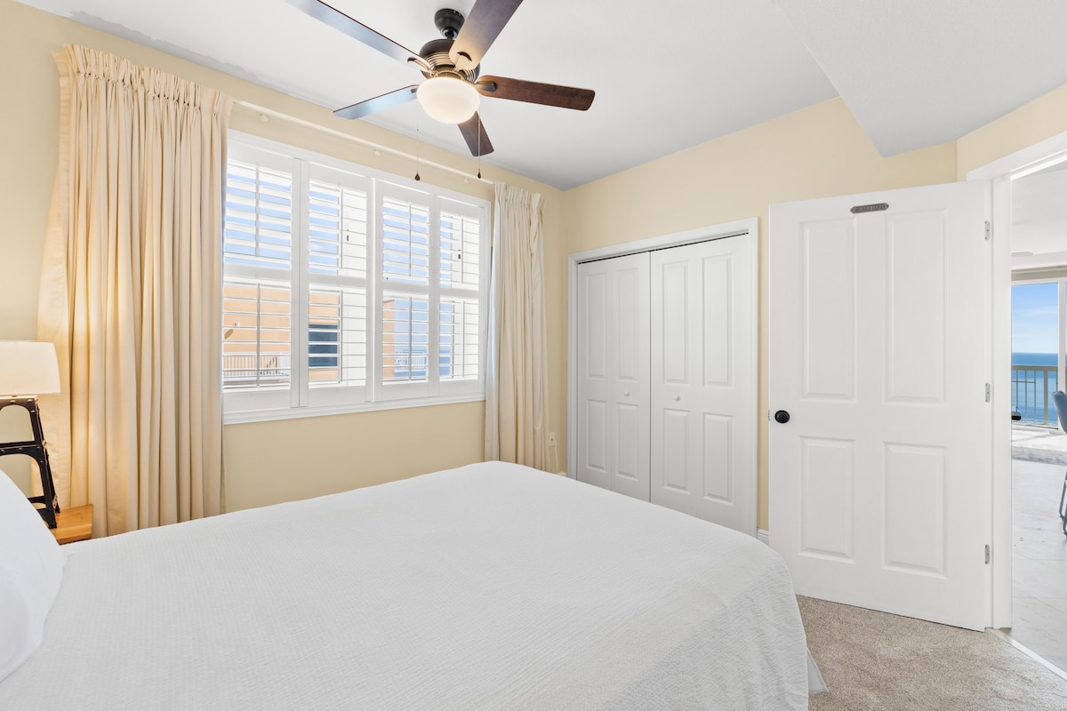 Panama City BeachThis beachfront penthouse at the Celadon Beach Resort has all you need for a truly memorable getaway! After a day in the Florida sun, you can relax in the oversized garden tub or enjoy the breathtaking views of the gulf from the large, wraparound balcony. This spacious condominium features plenty of natural light and a well-equipped kitchen. You will have access to two pools, two hot tubs, a fitness center and tennis courts. Celadon is near Pier Park but away from the heavier traffic.
